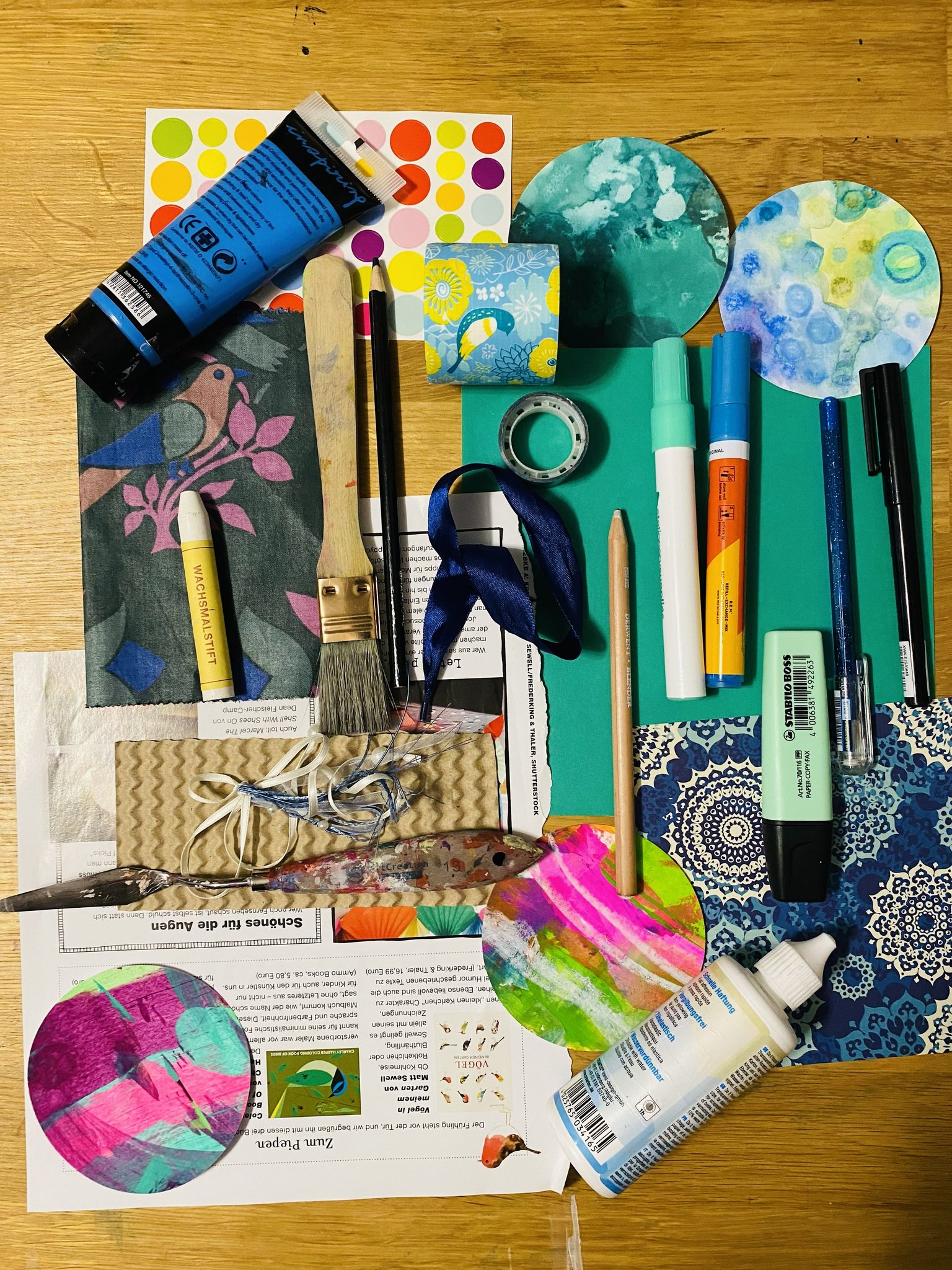 Im Atelier der Malwerkstatt Seetal kombinierst du im Workshop MIXED MEDIA zwei oder mehr Materialien, malst und zeichnest auf Leinwand. Du experimentierst mit Farben auf gemustertem Papier, klebst Stoffreste und Fotos auf Karton. Aus einer Vielzahl von Zeichen- und Malmaterialien zauberst du dein verrücktes Kunstwerk.