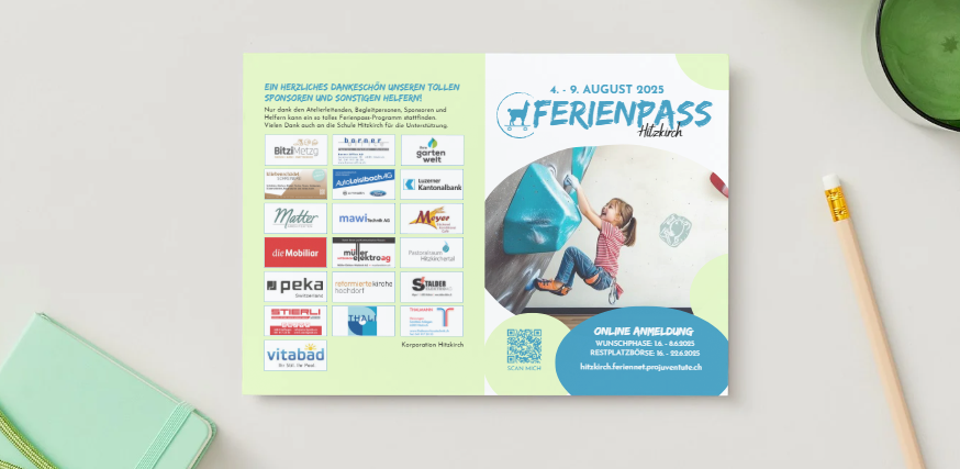 Startseite Aktuelles Flyer Ferienpass 2025 Flyer Ferienpass 2025 Den Flyer des diesjährigen Ferienpasses findet ihr hier. 11. Mai 2025 Flyer Ferienpass 2025 DIGITAL.pdf Kontakt Ferienpass Hitzkirch6285 Hitzkirchferienpass@schulen-hitzkirch.ch Weitere News Rückblick und Fotos Ferienpass 2025: Eine Woche voller Spiel, Spass und Staunen 22. August 2025 Impressionen Ferienpass 2024 08. August 2024 Flyer Ferienpass 2024 08. Mai 2024 Inhalt